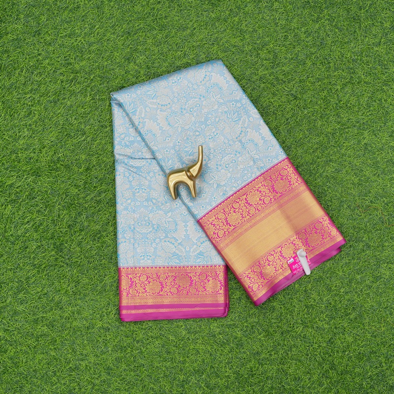 Chat to Buy Blue and Pink Color Semi Pattu Fancy Saree