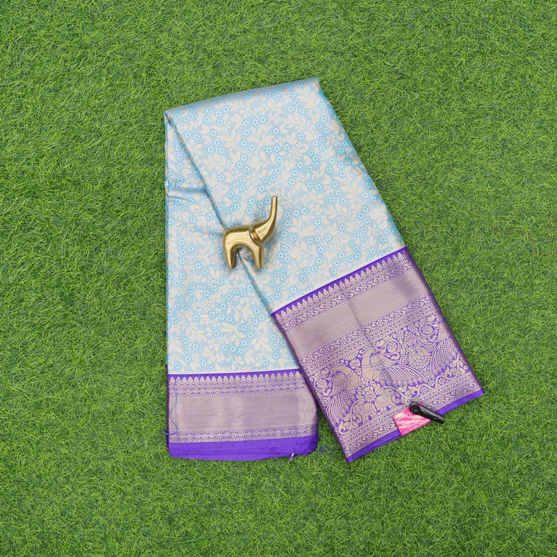 Chat to Buy Blue and Purple Color Semi Pattu Fancy Saree