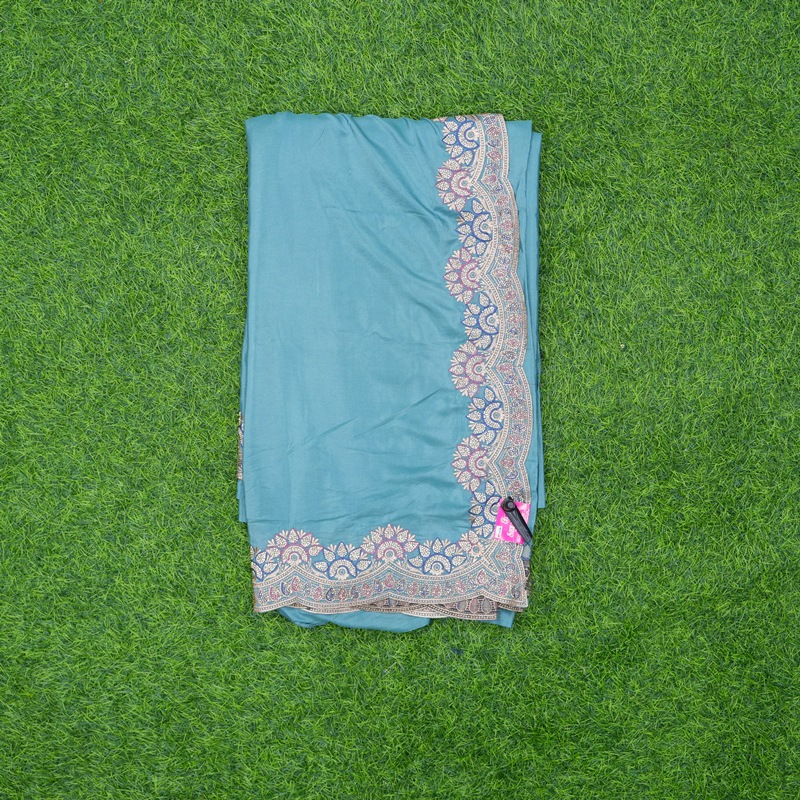 Chat to Buy Blue Color Crepe Satin Silk Designer Work Saree