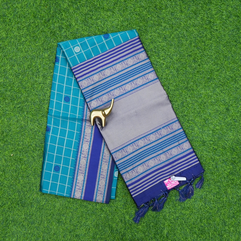 This saree is beautifully designed. The overall design of the saree is fantastic and adorned with a beautiful border, as shown. It comes with a matching designer blouse, which you can customise per your requirements.