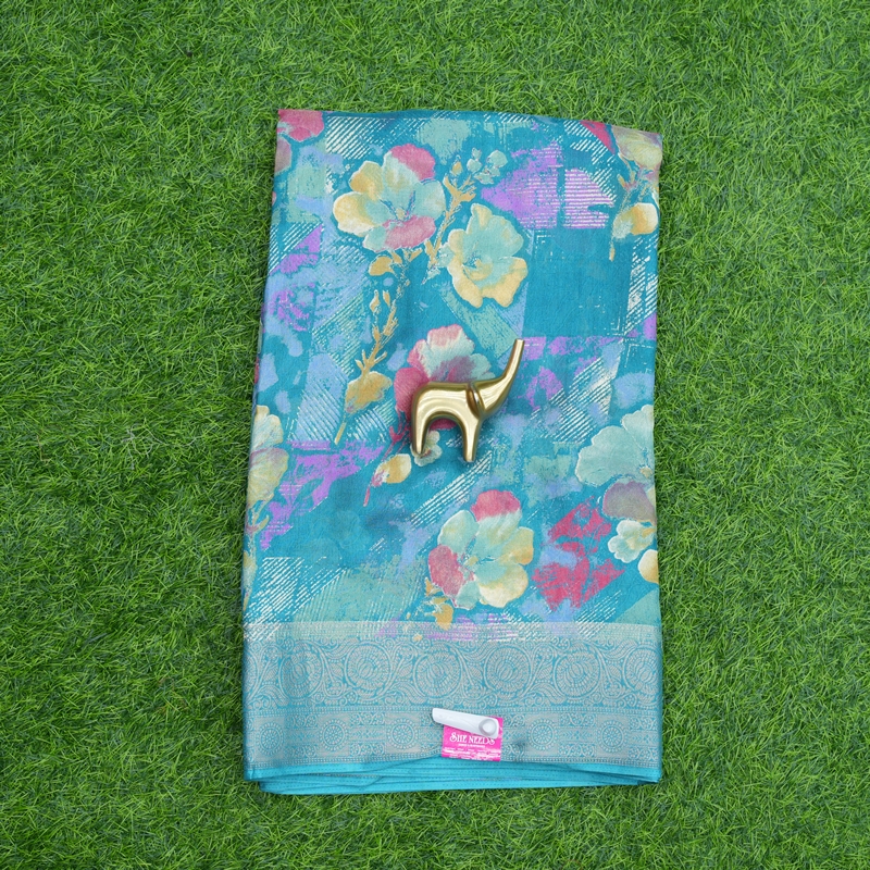 Blue Color Floral Printed Daily Wear Saree