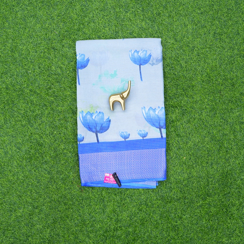 Blue Color Lotus Print Designer Daily Wear Saree