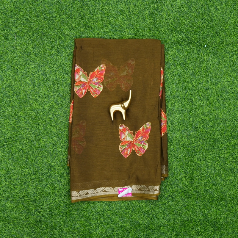 Brown Color Butterfly Design Georgette Saree