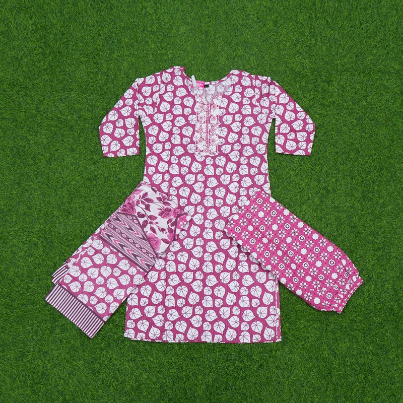 Chat to Buy Cream and Pink Color Floral Design Pure Cotton Dress