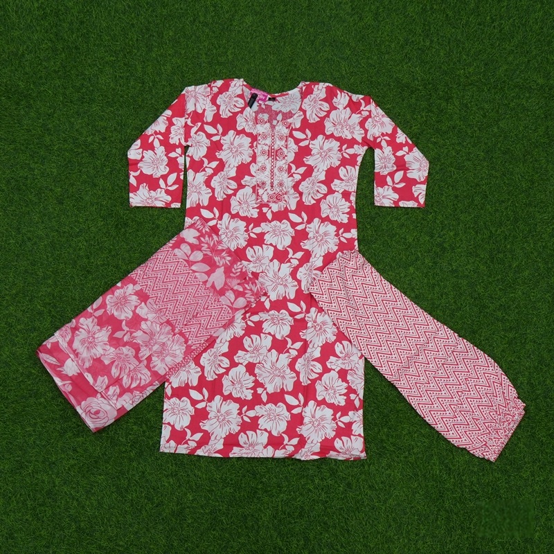 Cream and Pink Color Floral Design Pure Cotton Dress