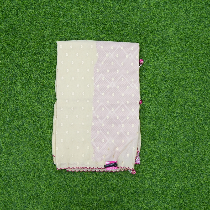 This saree is beautifully designed. The overall design of the saree is fantastic and adorned with a beautiful border, as shown. It comes with a matching designer blouse, which you can customise per your requirements.