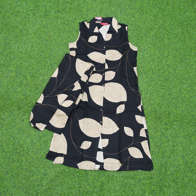 Daily Wear Black Leaf Printed Cotton Co-ord Set