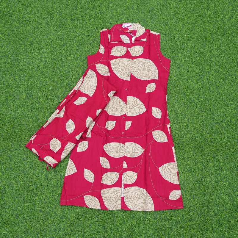 Daily Wear Pink Leaf Printed Cotton Co-ord Set