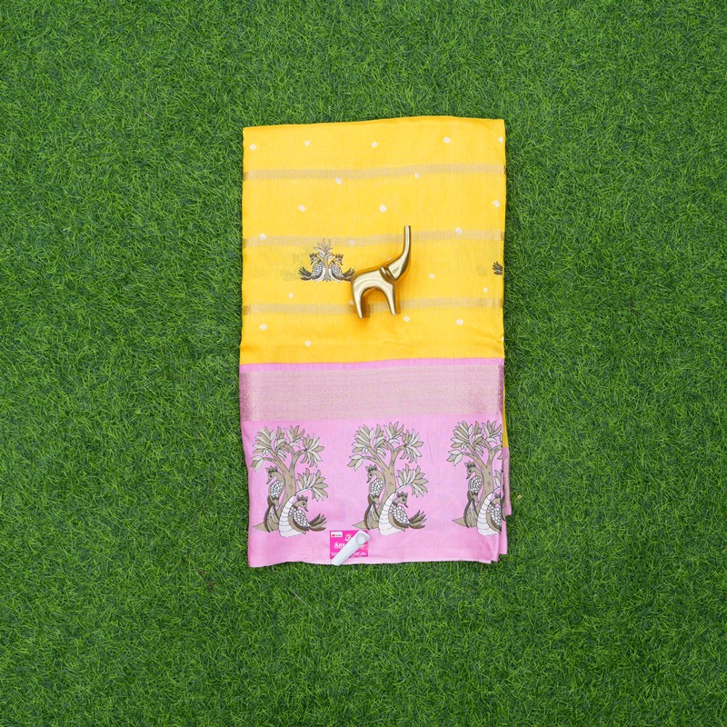Chat to Buy Elegant Yellow Saree with Artistic Peacock Border Design Saree