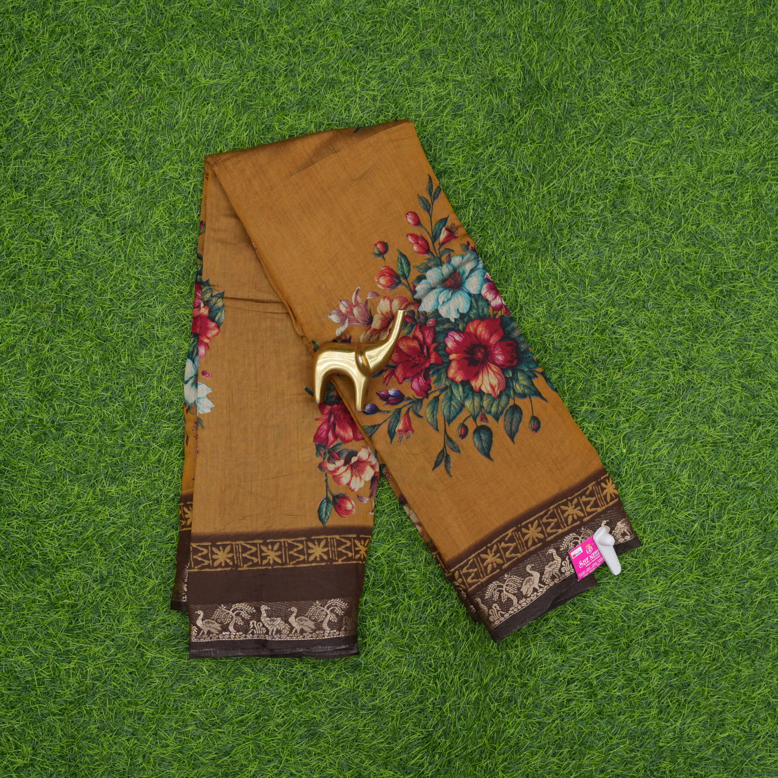 Gold and Brown Color Daily Wear Saree