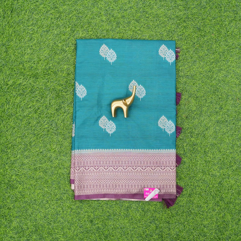 This saree is beautifully designed. The overall design of the saree is fantastic and adorned with a beautiful border, as shown. It comes with a matching designer blouse, which you can customise per your requirements.