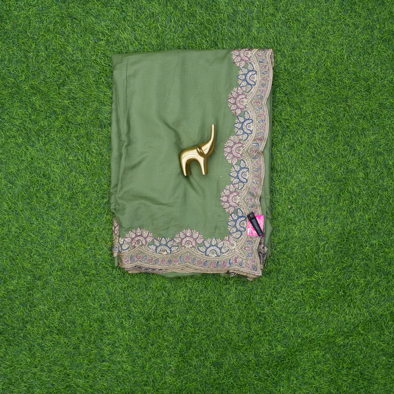 Chat to Buy Green Color Crepe Satin Silk Designer Work Saree