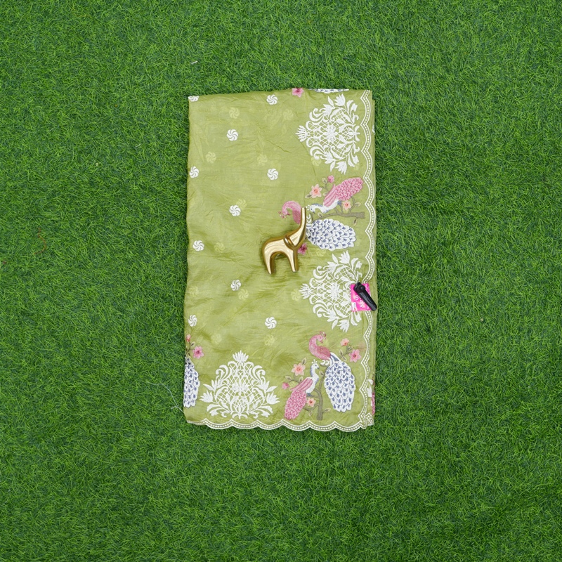 Green Color Designer Hand Embroidered Organza Work Saree