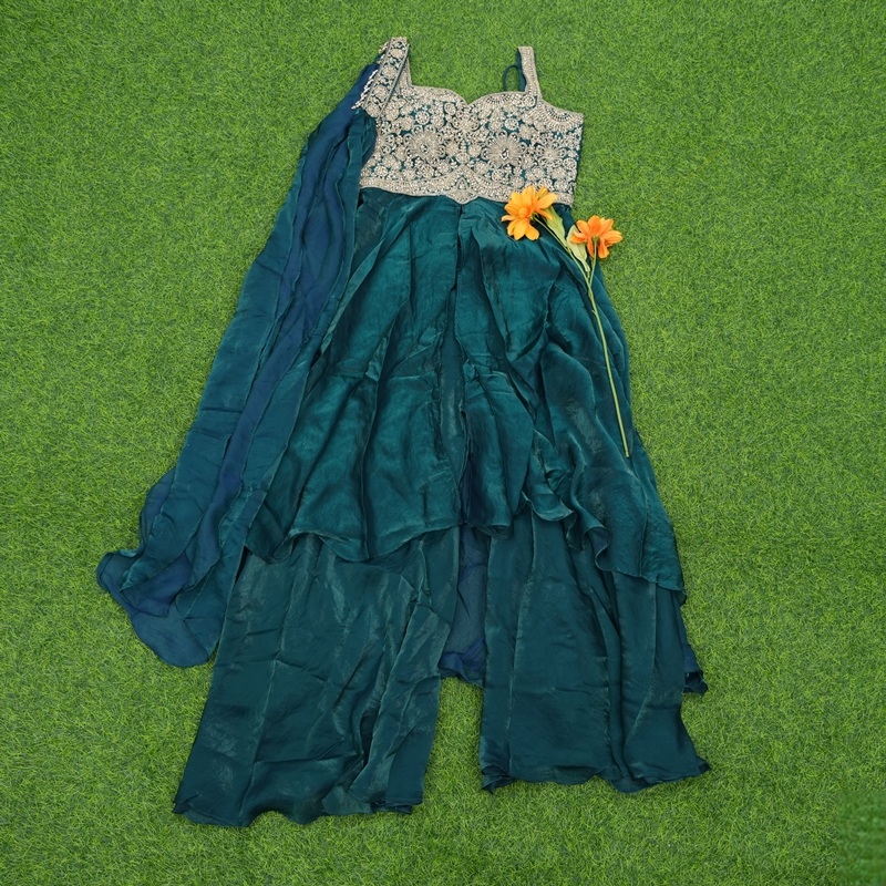 This designer sharara suit gives a bright traditional finish with its soft, breathable material designed for celebrations and festive gatherings. Comfortable and elegant, it complements both daytime and evening ethnic styling.