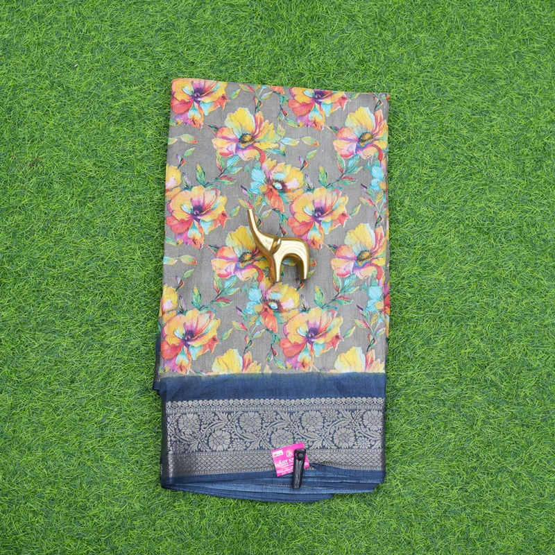 Chat to Buy Grey and Blue Color Floral Printed Daily Wear Saree
