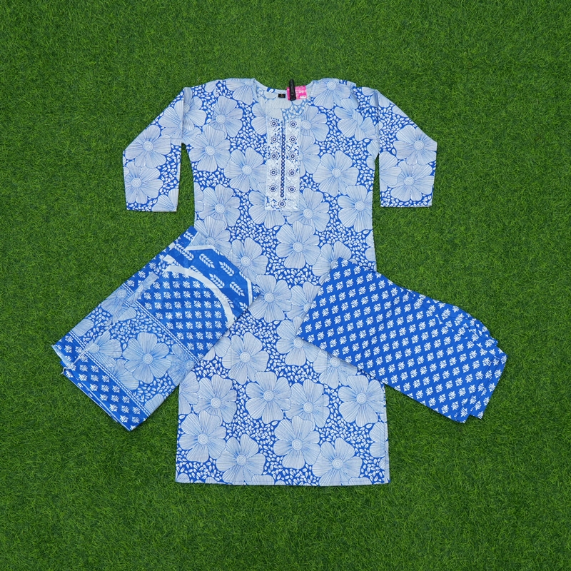 Chat to Buy Ink Blue Color Floral Design Pure Cotton Dress