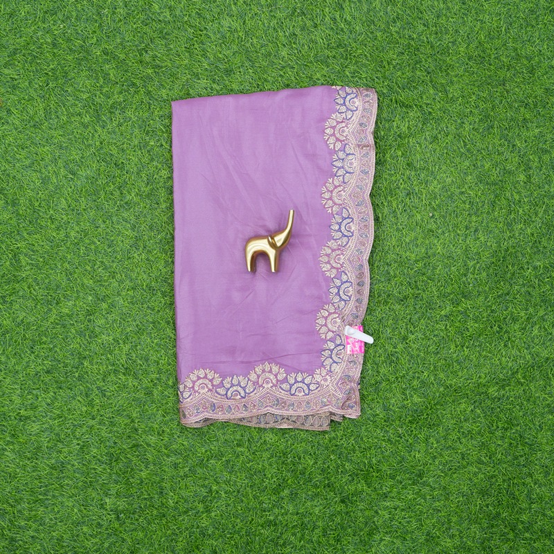 Lavender Color Crepe Satin Silk Designer Work Saree