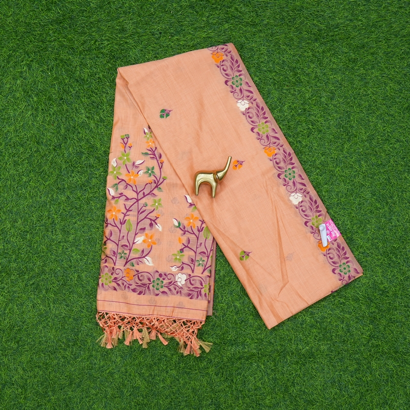 Light Orange Color Floral Designer Fancy Saree