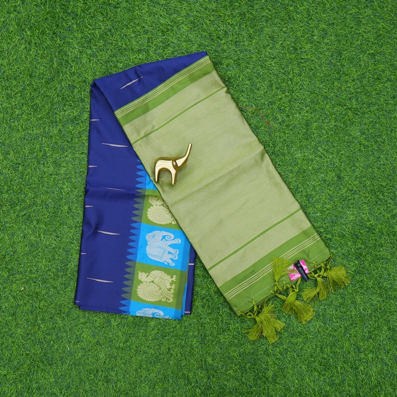 This saree is beautifully designed. The overall design of the saree is fantastic and adorned with a beautiful border, as shown. It comes with a matching designer blouse, which you can customise per your requirements.