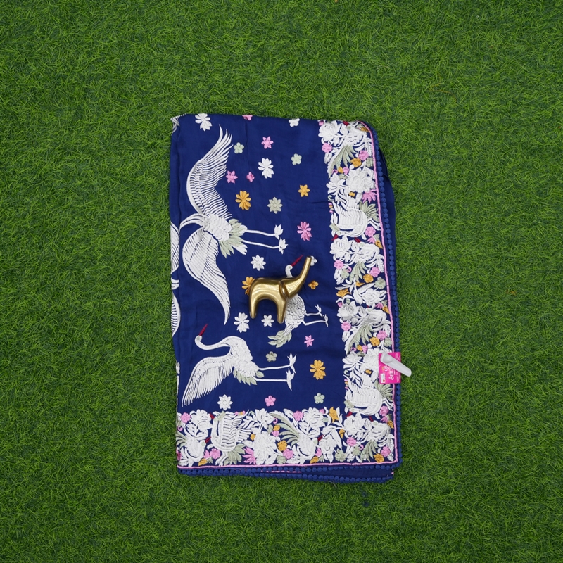 Stand out effortlessly in this Navy Blue Color Work Saree featuring intricate buttis and tissue blend material. The subtle sheen of the fabric makes it perfect for weddings and special gatherings.