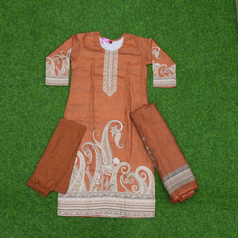 Rust Orange Floral Printed Designer Dress