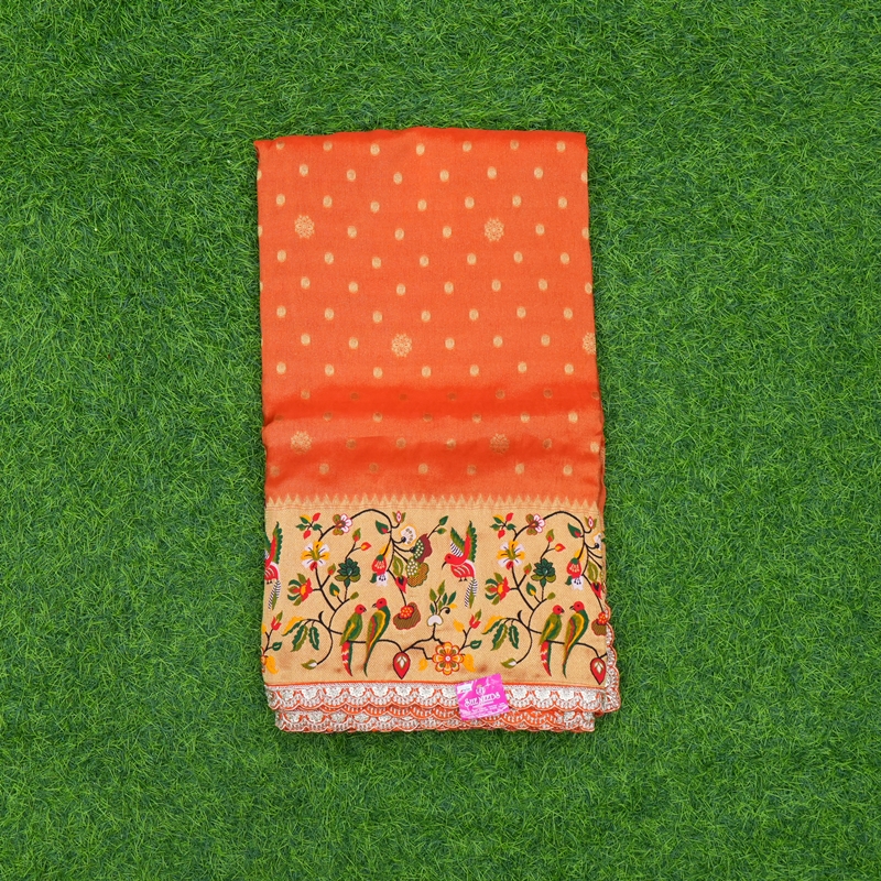 This saree is beautifully designed. The overall design of the saree is fantastic and adorned with a beautiful border, as shown. It comes with a matching designer blouse, which you can customise per your requirements.