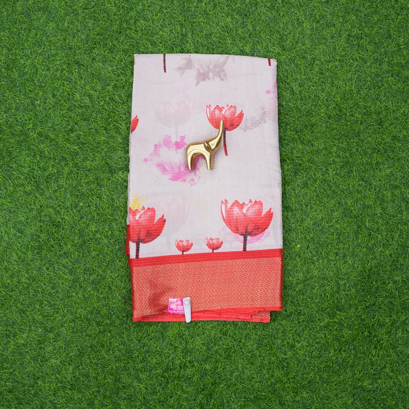 Chat to Buy Orange Color Lotus Print Designer Daily Wear Saree