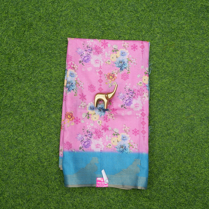 Chat to Buy Pink and Blue Color Daily Wear Saree