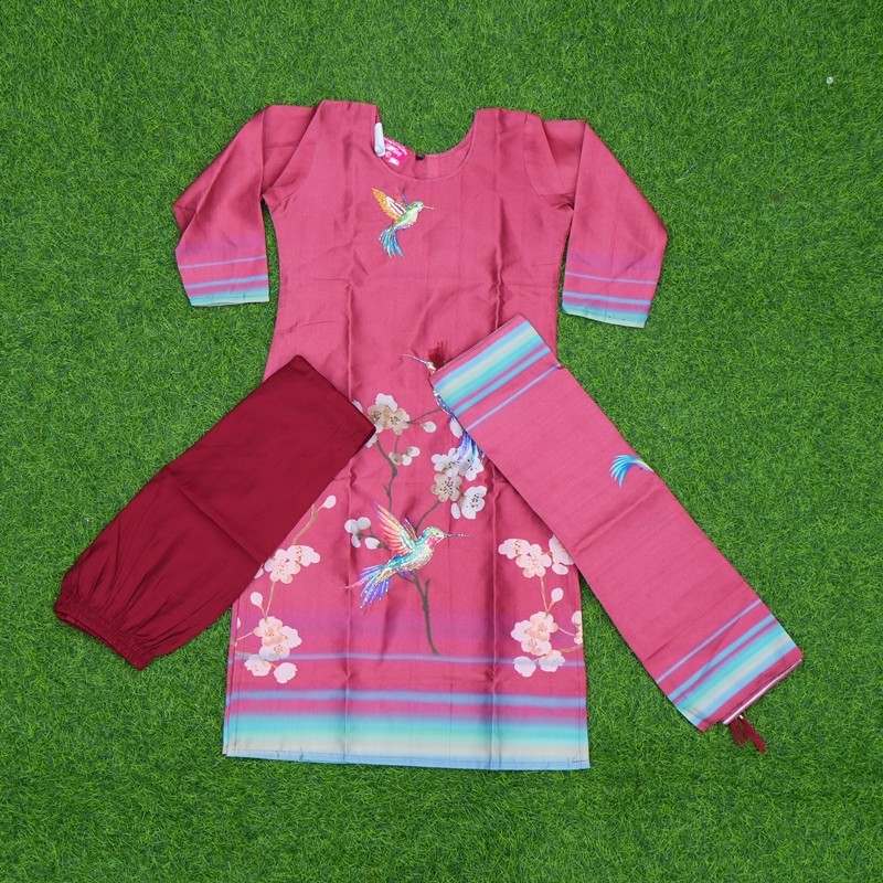 Pink Color Designer Dress with Bird Motif & Dupatta