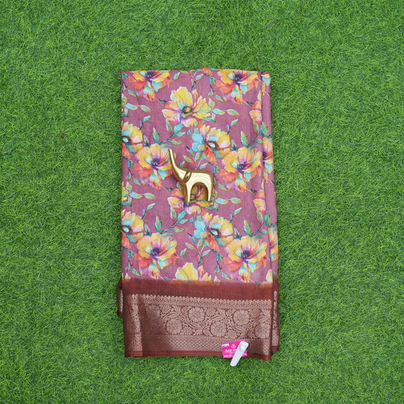 Pink and Brown Color Floral Printed Daily Wear Saree
