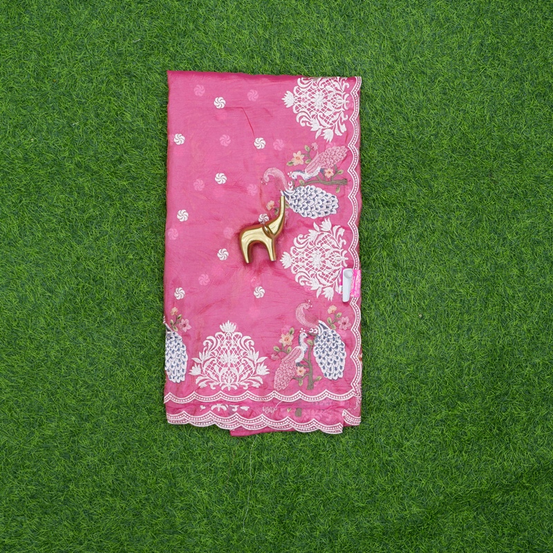 Pink Color Designer Hand Embroidered Organza Work Saree