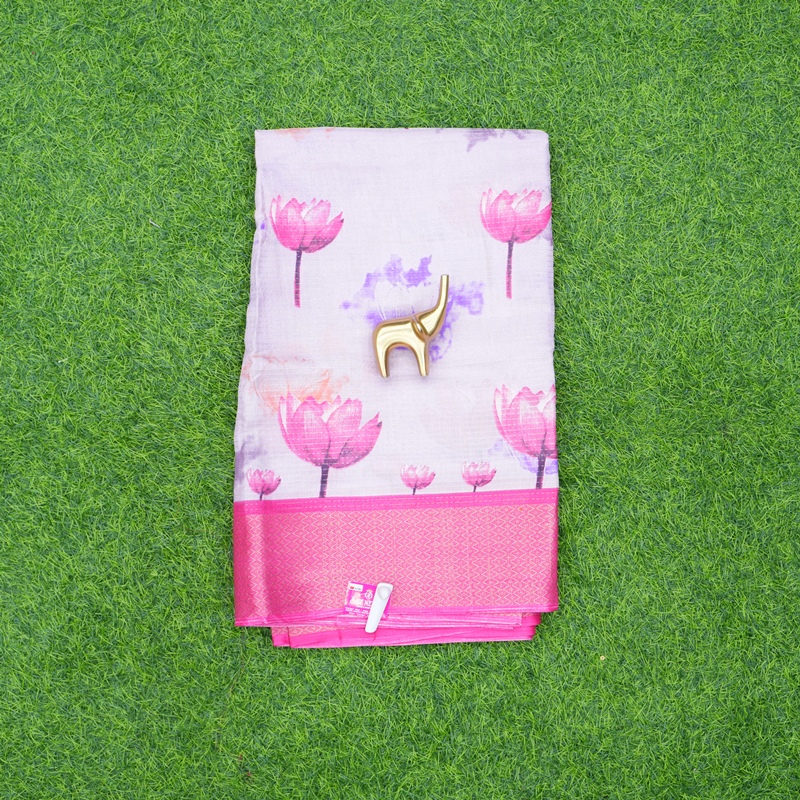 Chat to Buy Pink Color Lotus Print Designer Daily Wear Saree