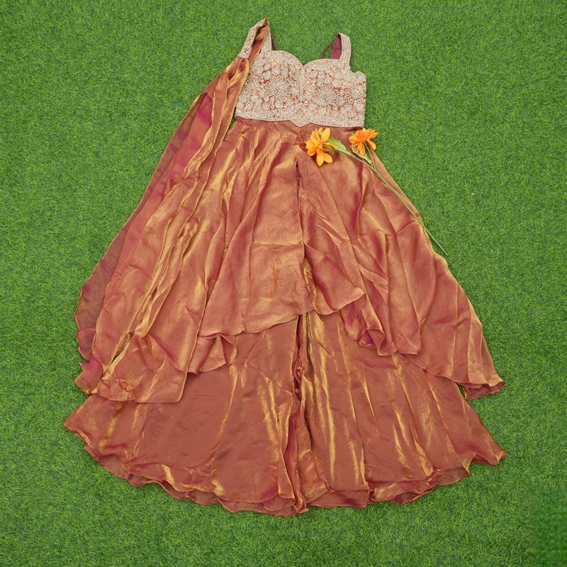 Rust Orange Color Designer Sharara Set