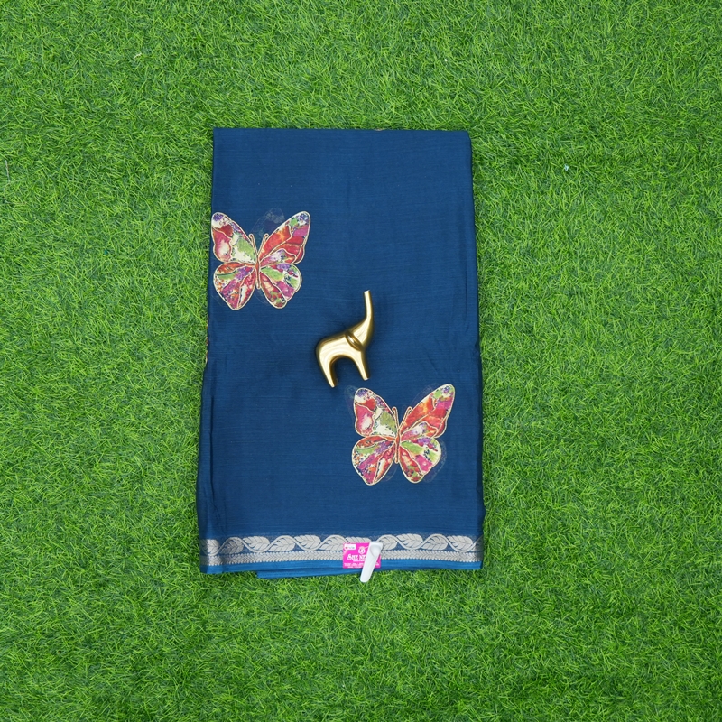 Chat to Buy Teal Blue Color Butterfly Design Georgette Saree