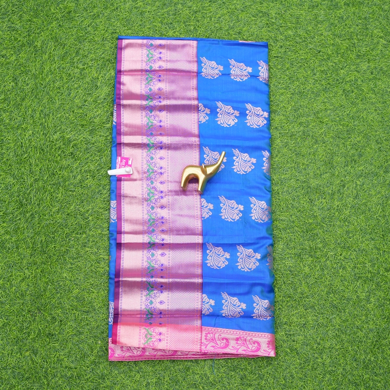Blue and Pink Color Fancy Pattu Saree