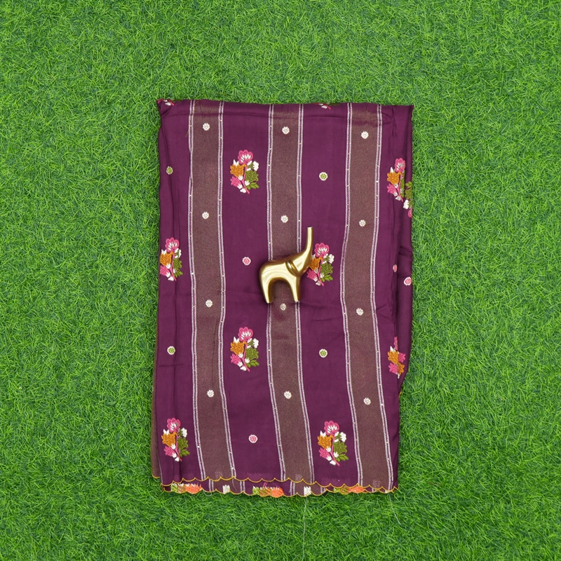 This saree is beautifully designed. The overall design of the saree is fantastic and adorned with a beautiful border, as shown. It comes with a matching designer blouse, which you can customise as per your requirements.