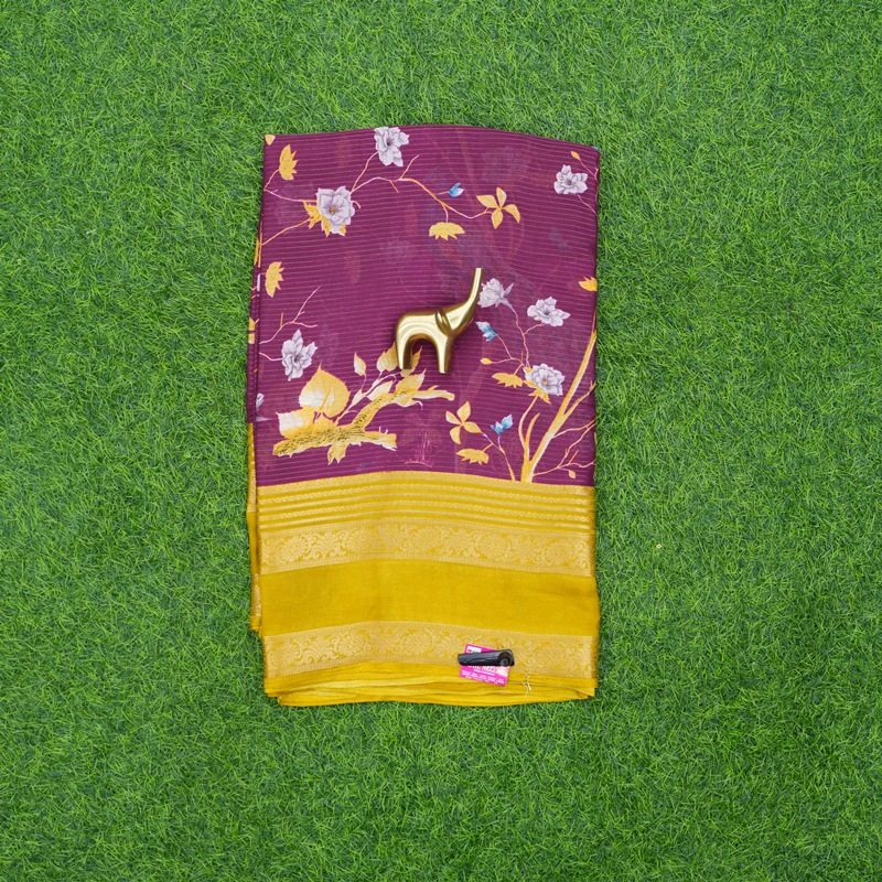 Wine Floral Print With Mustard Yellow Border Daily Wear Saree