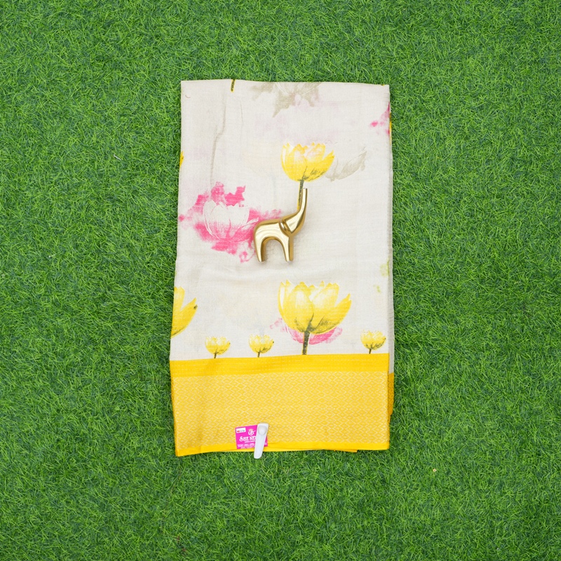 Yellow Color Lotus Print Designer Daily Wear Saree
